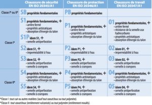 Descriptifs de chaque norme S dans la chaussure de sécurité lisashoes